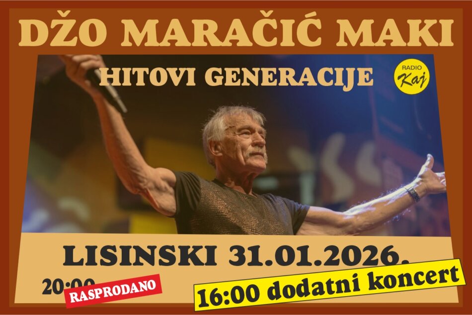 DŽO MARAČIĆ MAKI – HITOVI GENERACIJE DODATNI KONCERT Subota, 31. siječnja 2026. u 16 sati Koncertna dvorana Vatroslava Lisinskog U…