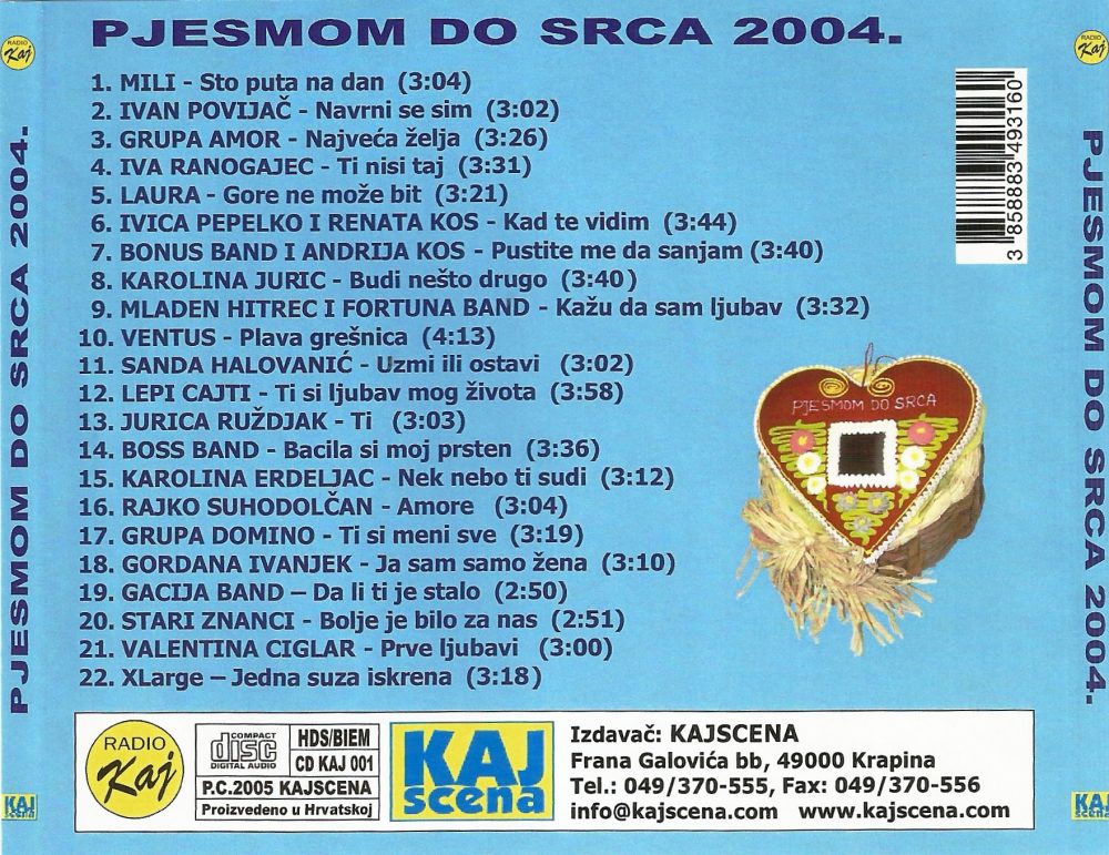 “PJESMOM DO SRCA” UZ 22 NOVA HITA – Sinoć je prepunoj Festivalskoj dvorani u Krapini održan drugi Festival “Pjesmom do srca” u organizaciji udruge “Kajscena”. Nastupila su 22 izvođača s područja sjeverozapadne Hrvatske, odnosno kajkavskog govornog područja, jer Festival je pokrenut s idejom afirmacije zagorskih glazbenika. Kako nagrade potiču glazbenike na kvalitetniji rad, Festival “Pjesmom do srca” je natjecateljskog karaktera, pa su tako sinoć dodijeljene po tri statusne nagrade u tri kategorije. Prema ocjeni stučnog ocjenjivačkog suda prvo mjesto pripalo je pjevačici Mili za skladbu “Sto puta na dan”, drugo mjesto osvojio je duet Ivica Pepelko i Renata Kos sa skladbom “Kad te vidim”, a treće Iva Ranogajec sa pjesmom “Ti nisi taj”.